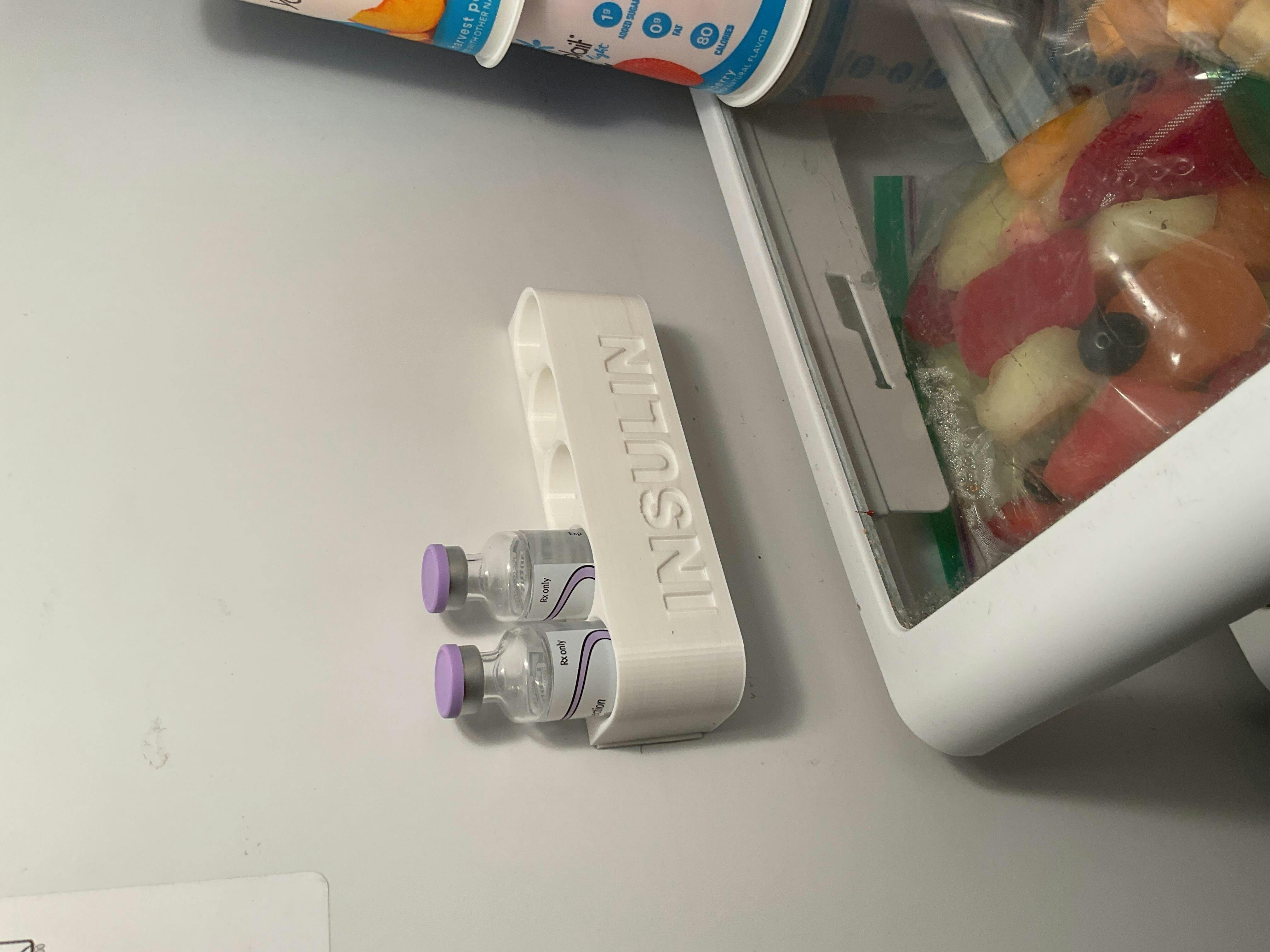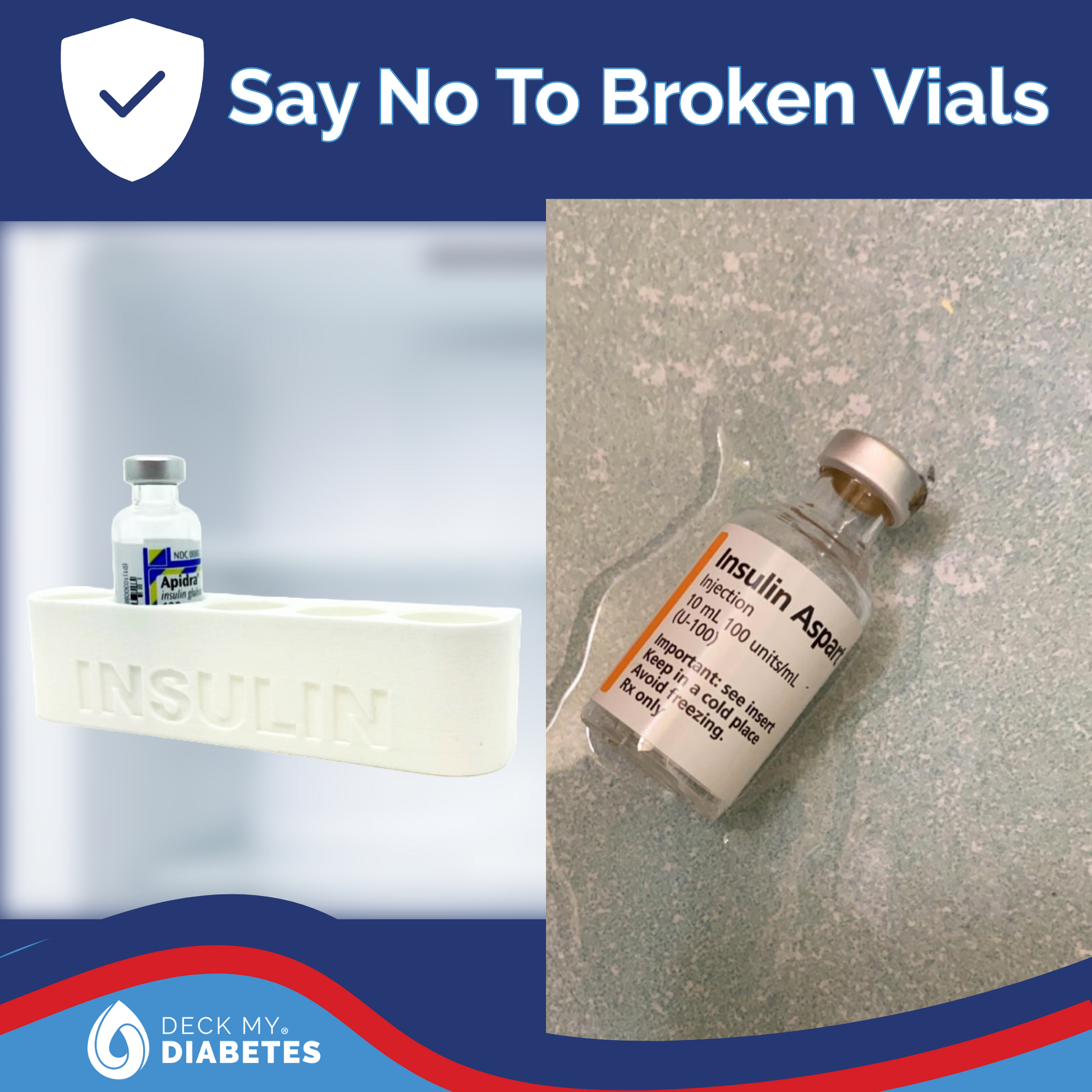 Say goodbye to insulin bottles rolling around the butter drawer! The Wall-Mount Insulin Caddy™ keeps up to 5 10mL TALL insulin vials neatly organized and easy to access—right inside your refrigerator.