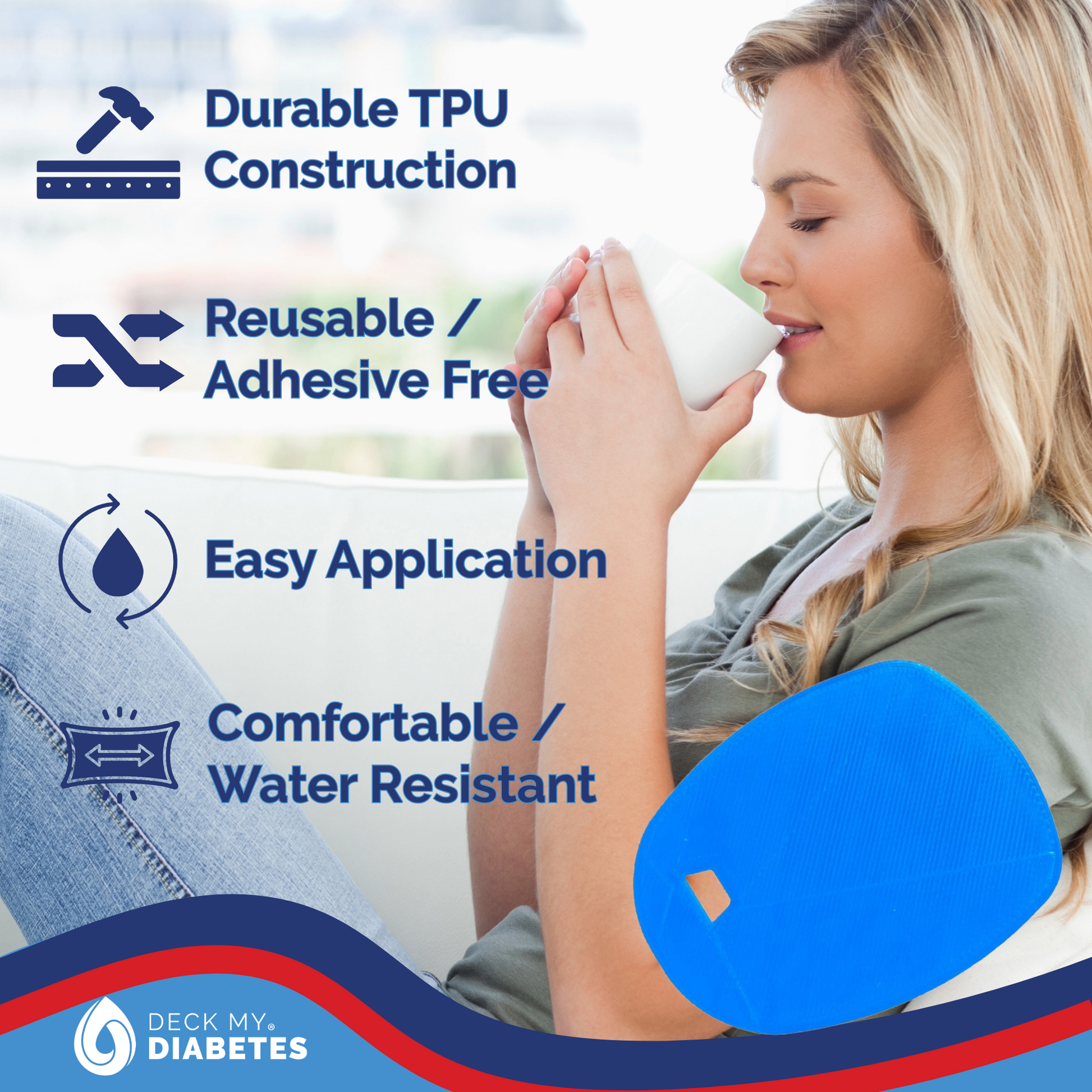 3. Place on prepped skin and secure with a Deck My Diabetes GripShield® and/or overlay patch.
